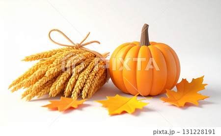 秋季物品套裝插圖(南瓜、落葉、橡實、圍巾等)