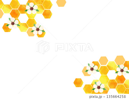 水彩蜂巢背景框,麥盧卡花和蜂蜜裝飾材料