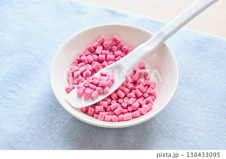將麵包麵團與顆粒狀草莓醬揉勻。
