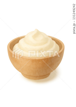 木碗盛裝白色糊狀物。水彩插圖,PNG,透明背景。