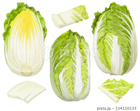 手繪水彩插圖大白菜 | 冬季蔬菜、烹飪食材、食物插圖