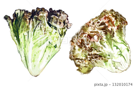生菜切成兩半-新鮮蔬菜手繪水彩插圖