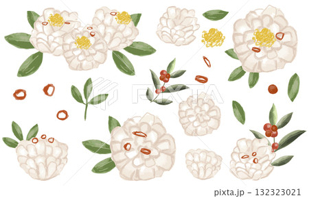 裝飾切菊花蘿蔔和日式裝飾套裝(水彩風格)