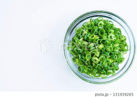 切碎的蔥白色背景