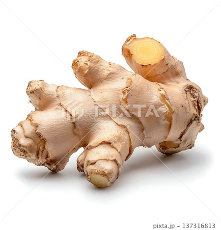 Fresh Ginger Root Isolated on White Background for Culinary and Medicinal Uses in Cooking