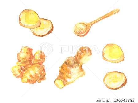 切(片)薑-蔬菜和調味品的手繪水彩插圖