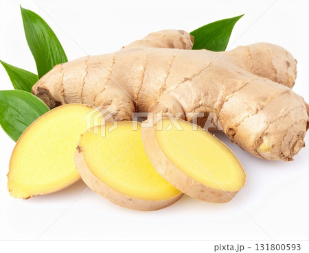 薑片置於白色背景上