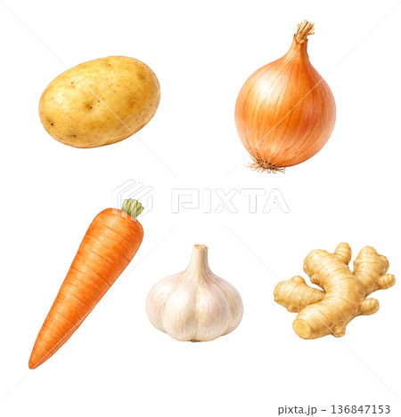 大蒜與生薑水彩插畫素材 | 可用於烹飪的芳香蔬菜