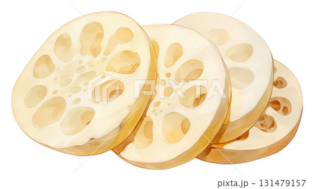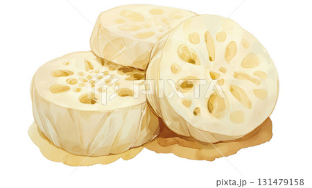 水彩畫可見切端蓮藕插圖[手繪]白色背景透明背景複製空間