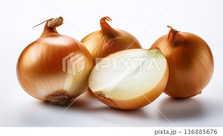 切好的洋蔥擺放在白色背景上 | 多個洋蔥的特寫
