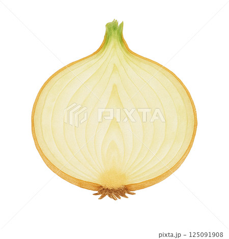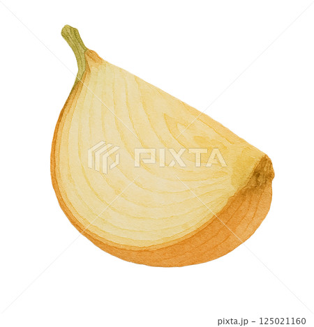洋蔥和橫切面的水彩插圖(透明背景)