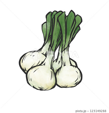 新洋蔥的插圖(3 件套,白色背景,水彩風格)/春季蔬菜材料