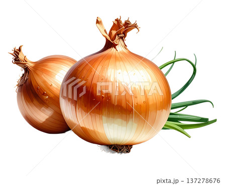 洋蔥和橫切面的水彩插圖(透明背景)