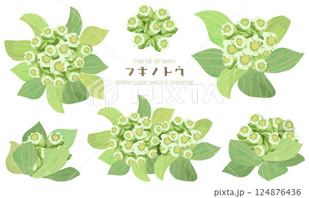 一組用水彩粗略繪製的蜂斗菜插圖材料