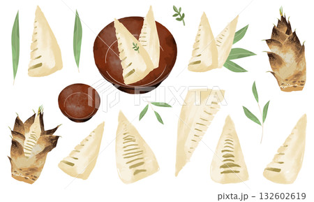 一組竹筍插圖(竹筍是新年菜餚和日本料理的食材)