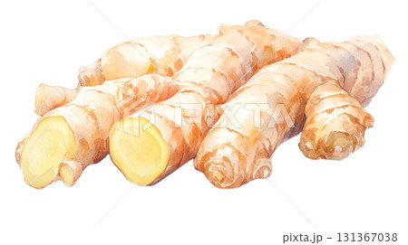 生薑(單品)手繪水彩畫蔬菜和調味品