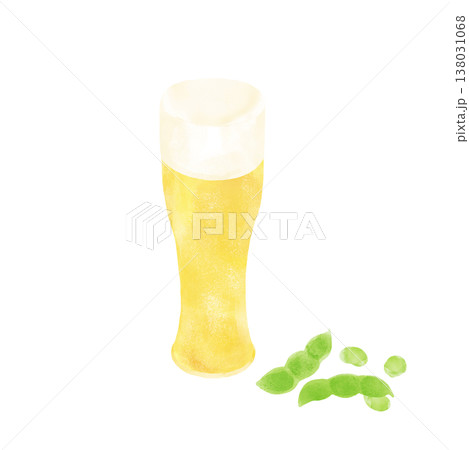啤酒和毛豆水彩觸感