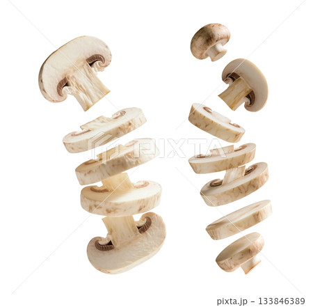 Shiitake shittake mushroom fungus fungi vegetable, many angles and view side top front basket slice isolated on transparent cutout, PNG file. Mockup template