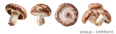 Set of isolated shiitake mushrooms on transparent background for cooking and food ingredient design.