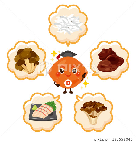 富含維生素D的食物和維生素D角色插畫集