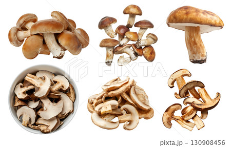 Set of isolated porcini mushrooms on transparent background for cooking and food ingredient design.