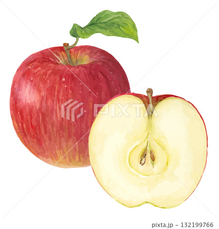 切開的蘋果的水彩插圖