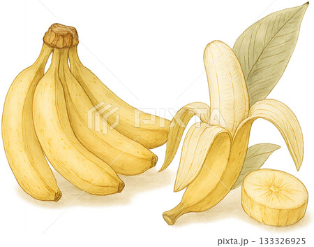 水彩風格香蕉插畫,成熟香蕉,水果素材,PNG摳圖