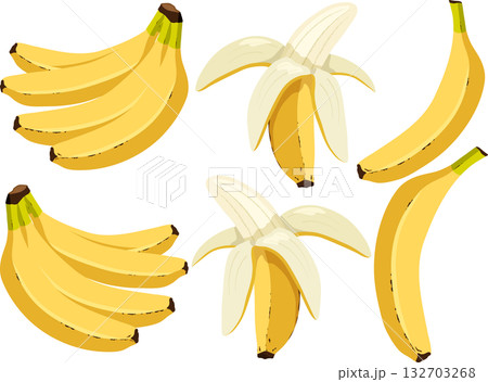 各種顏色的香蕉和各種切開的香蕉/水果插圖素材