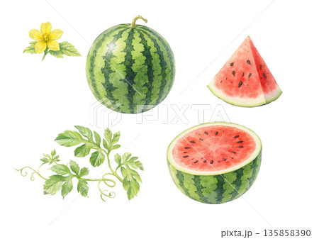 西瓜水彩插圖集素材