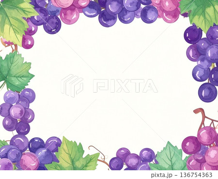 葡萄(巨峰)方框水果手繪水彩插畫背景素材