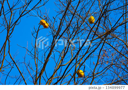 Persimmon tree with Ripe orange persimmons fruit in autumn garden in Korea
