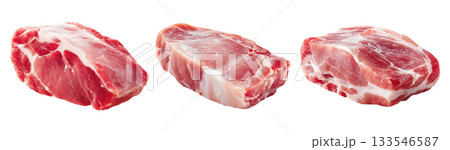 Set of raw pork collar cuts isolated on transparent background. Fresh meat for cooking and food preparation.