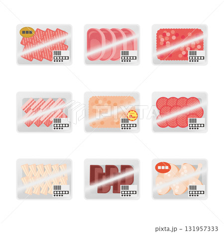 包裝豬肉(豬裡肌)折扣產品超市插畫