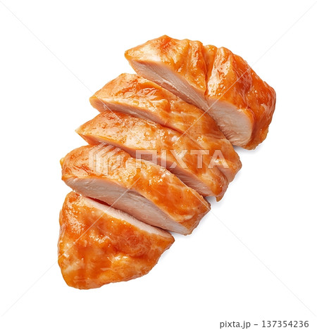 Sliced Juicy Chicken Breast With Glaze Isolated On White Background For Culinary Presentation
