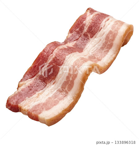 Appetizing raw bacon slice of uncooked pork meat ready for savory breakfast meal. Food close up transparency background