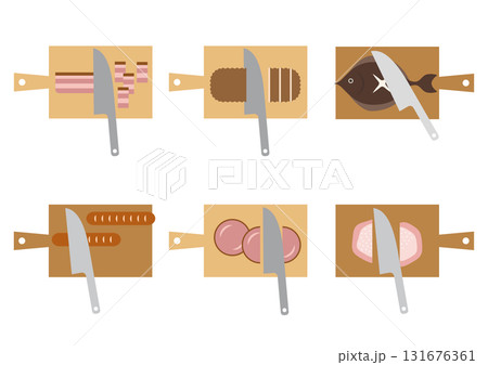 設定被切的肉和魚的插圖