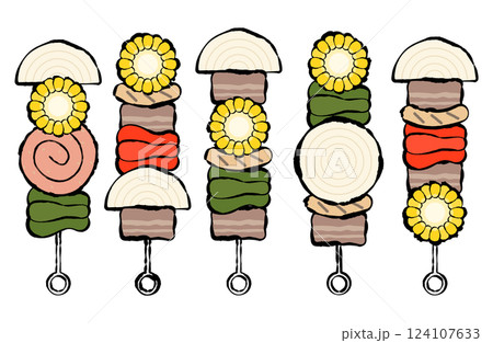刷畫的燒烤串向量插圖集