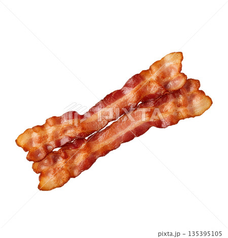 Appetizing raw bacon slice of uncooked pork meat ready for savory breakfast meal. Food close up transparency background