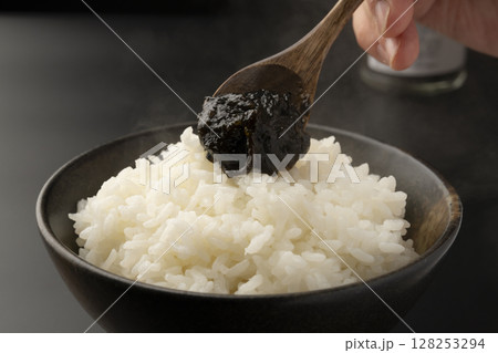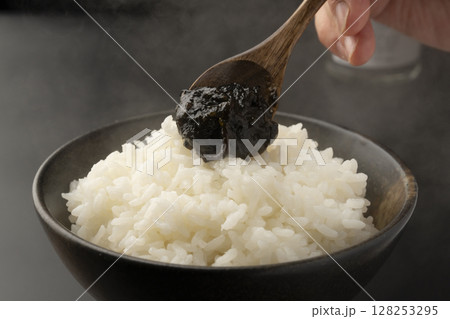 新鮮煮熟的米飯和海藻佃煮:日式早餐