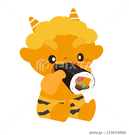 紅色惡魔開心地吃著江戶卷的向量插圖