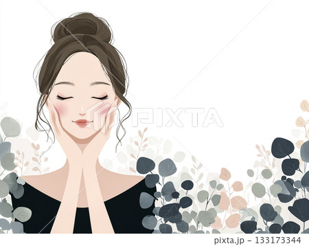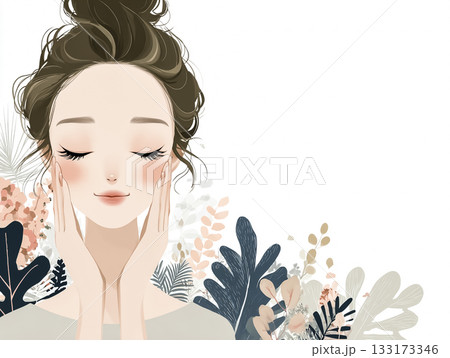 成年女性使用鼻膜進行皮膚護理的插圖資料 8