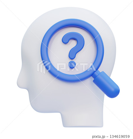 3D Claymorphism Human Profile with Magnifying Glass and Question Mark inside Head
