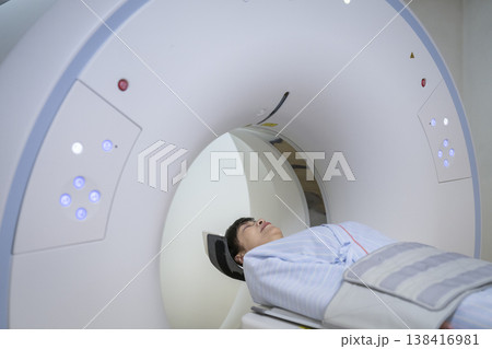 接受CT掃描的中年女性
