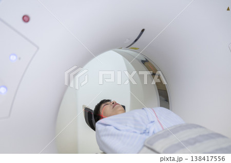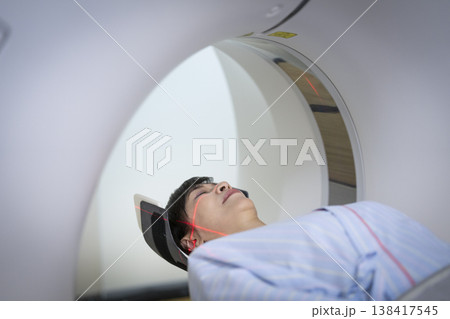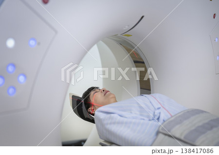 中年婦女接受頭部CT掃描