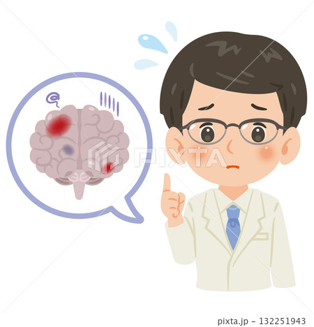 不健康的大腦和一位穿白大褂的男醫生,上身插圖