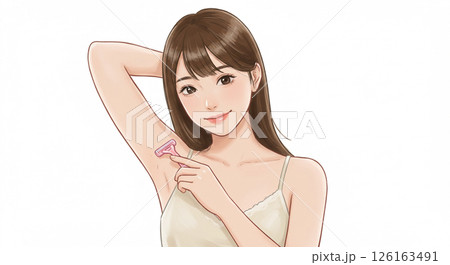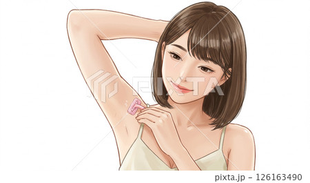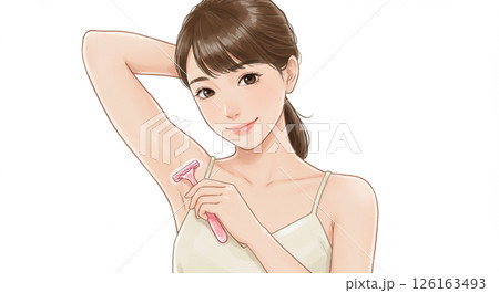 一位女士用剃刀去除腋毛的插圖(水彩風格)