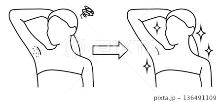 線條畫插圖,描繪了女性腋毛去除前後的對比。