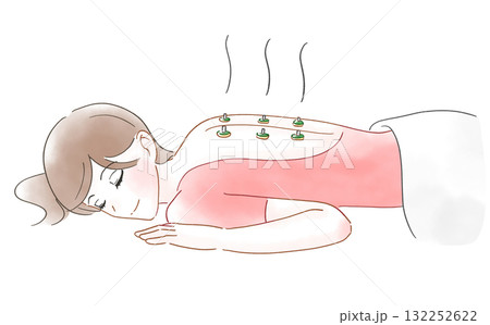 一位女士背部艾灸的水彩畫