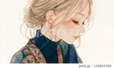 年輕女子轉身,水彩風格