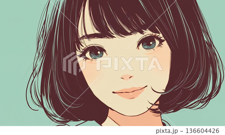 微笑女性側臉插圖集